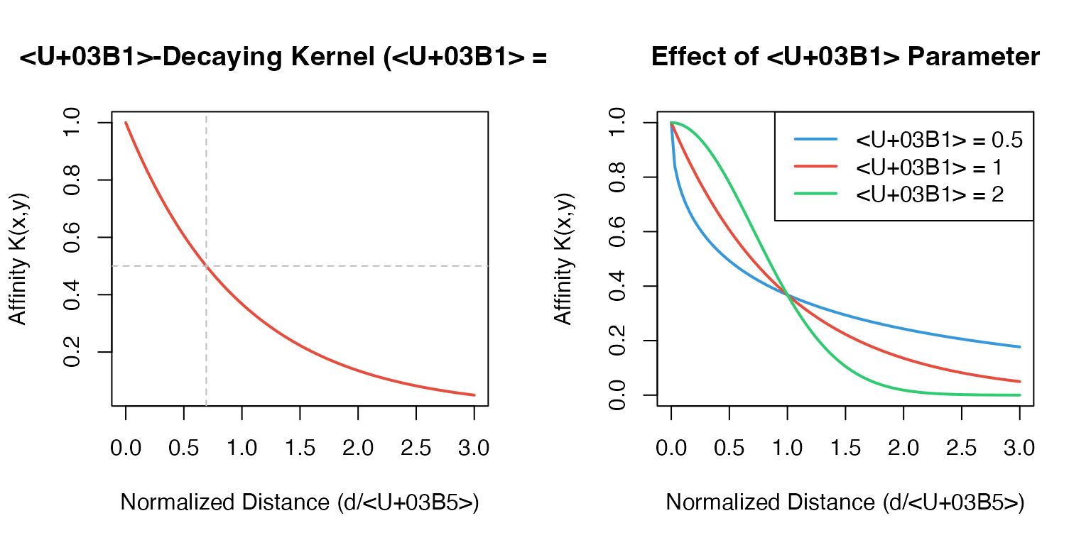 xlab = "Normalized Distance (d/ε)", ylab = "Affinity K(x,y)",