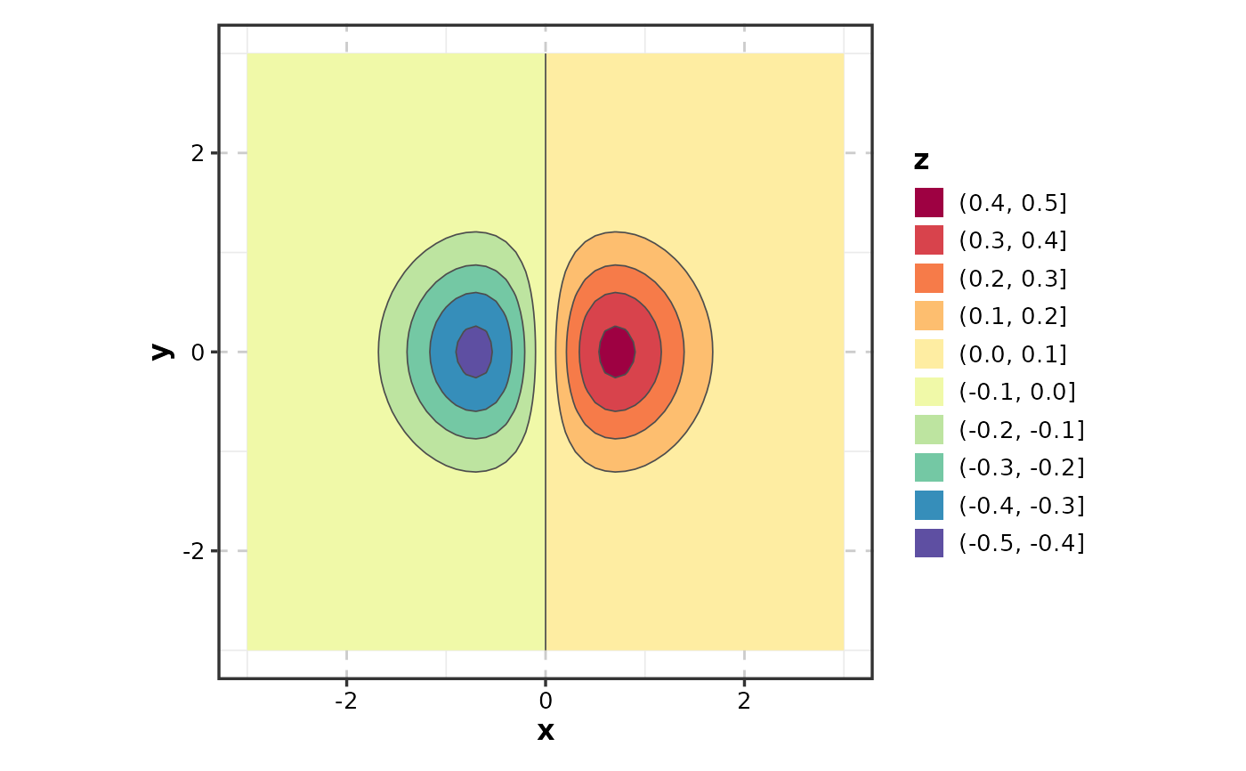 grid$z <- with(grid, x * exp(-x^2 - y^2))