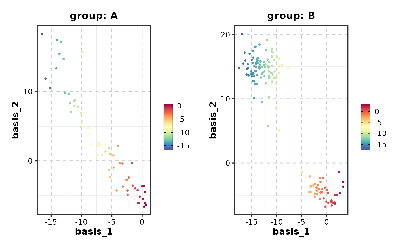 FeatureDimPlot(dim_example, features = "basis_1", split_by = "group")