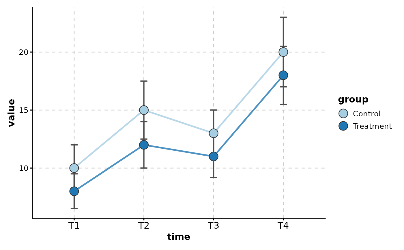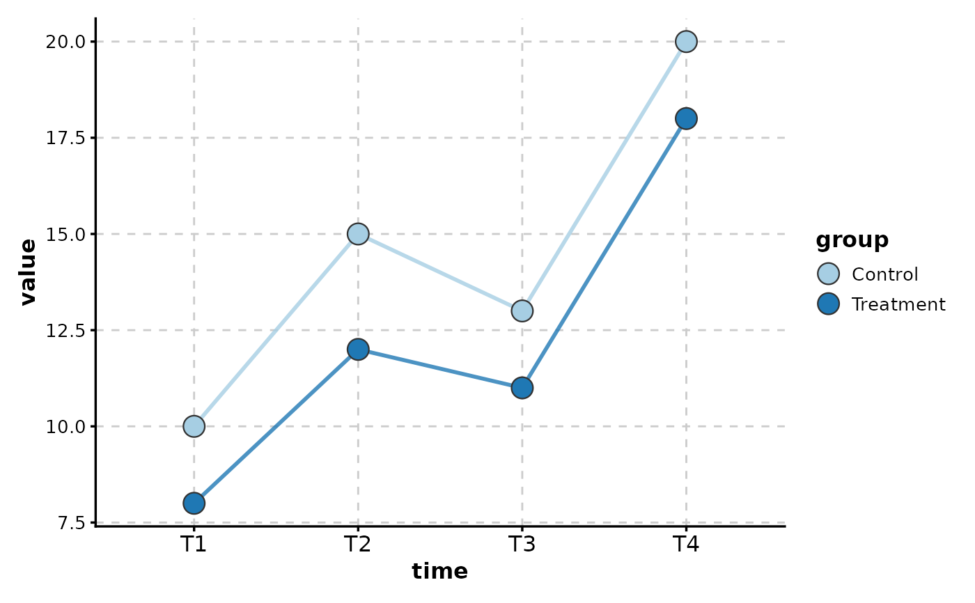 LinePlot(data, x = "time", y = "value", group_by = "group", add_bg = TRUE)