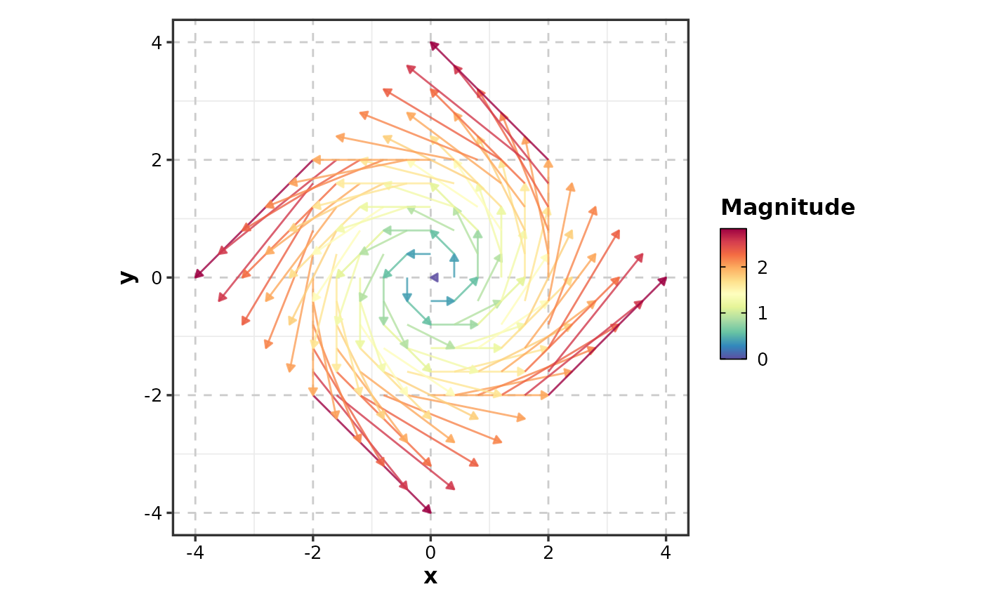 QuiverPlot(grid, x = "x", y = "y", u = "u", v = "v")