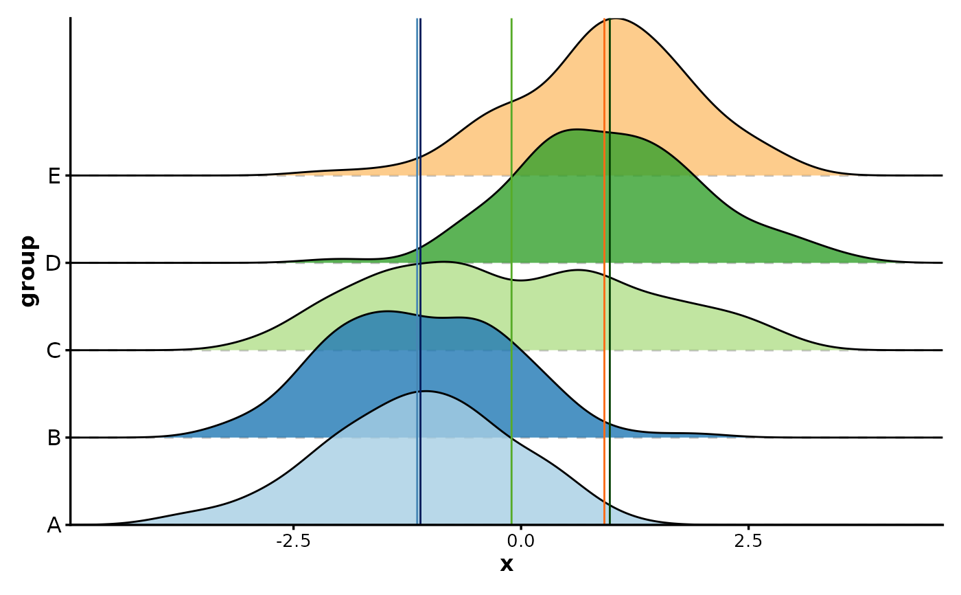 RidgePlot(data, x = "x", group_by = "group", add_vline = TRUE, vline_color = TRUE)