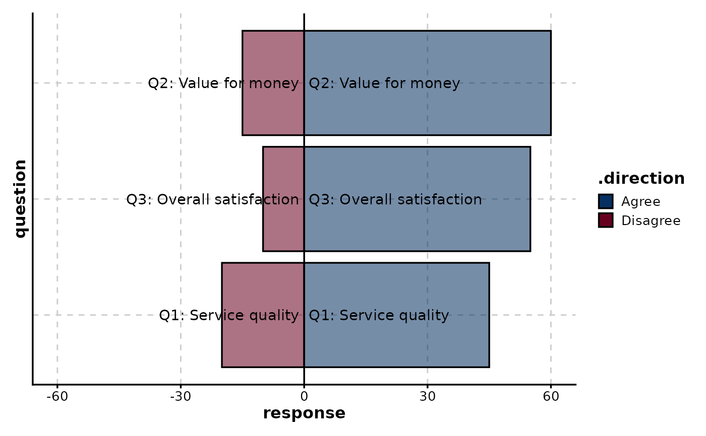 # Survey-style diverging bars (e.g., agree/disagree)