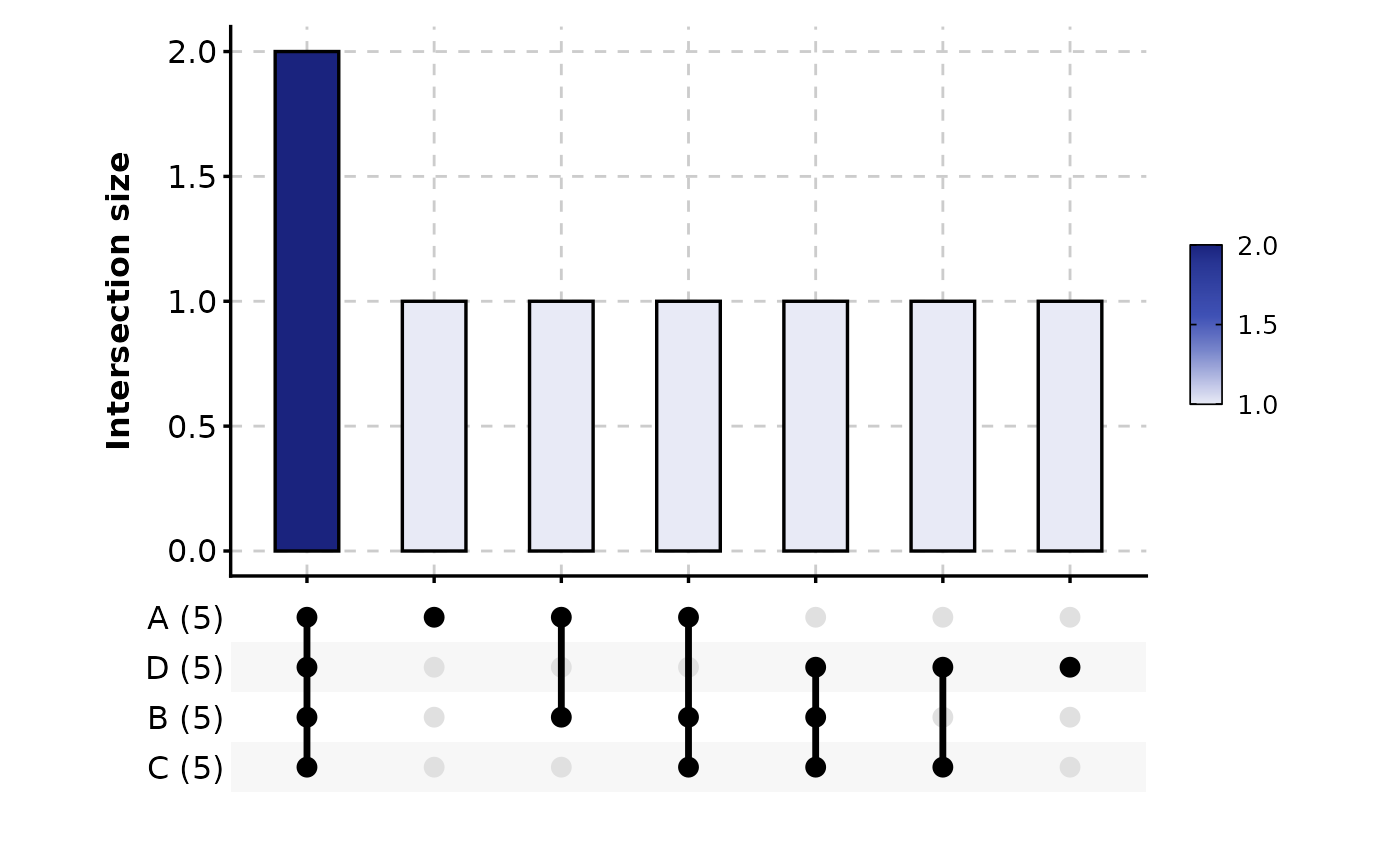 Creates an UpSet plot to visualize intersections between sets. UpSet plots are a more scalable alternative to Venn diagrams for showing set intersections. The function supports multiple input formats: list, long, wide, and pre-processed UpsetPlotData objects.