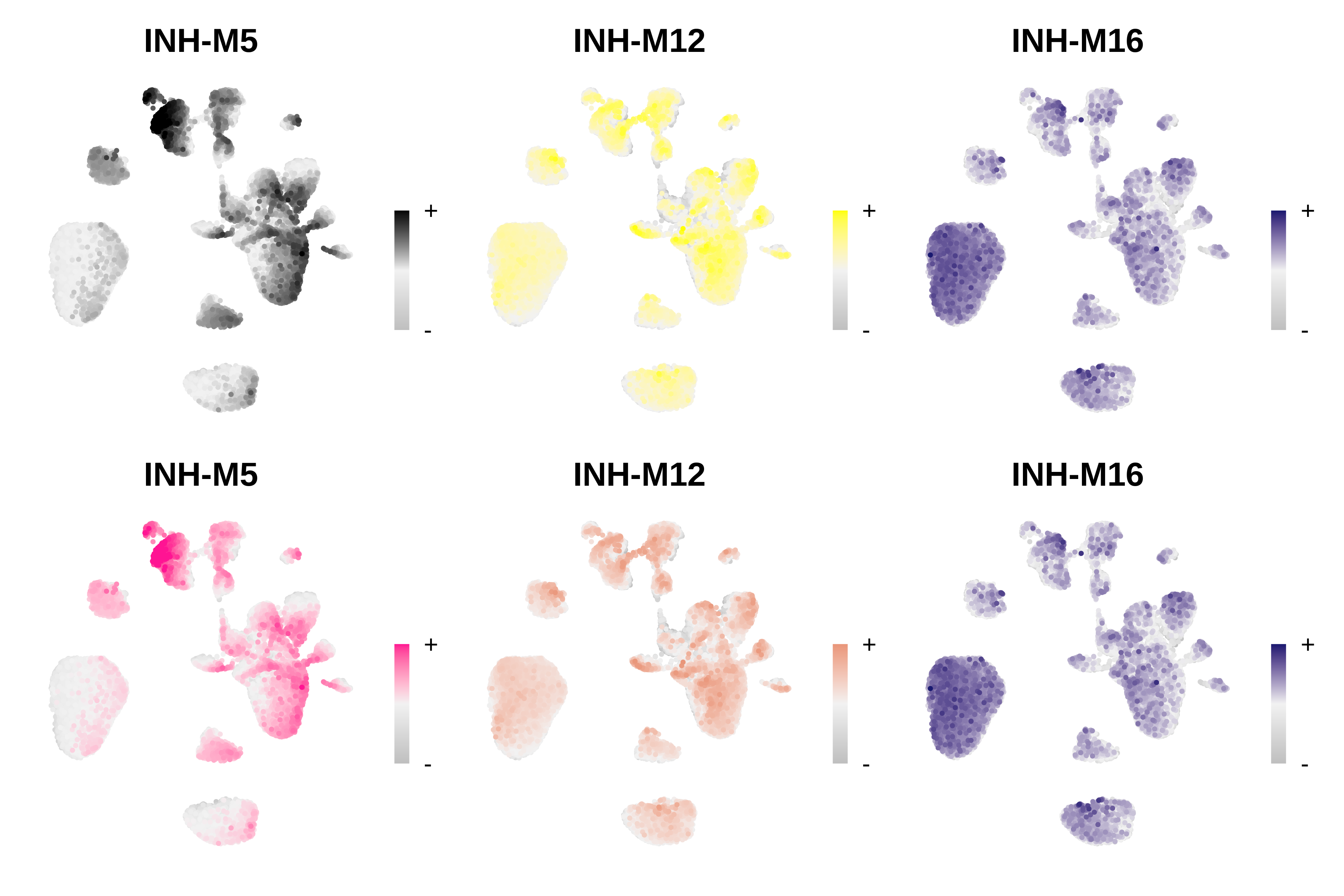 pl2 <- ModuleFeaturePlot(seurat_obj, module_names = c('INH-M5', 'INH-M12', 'INH-M16'))