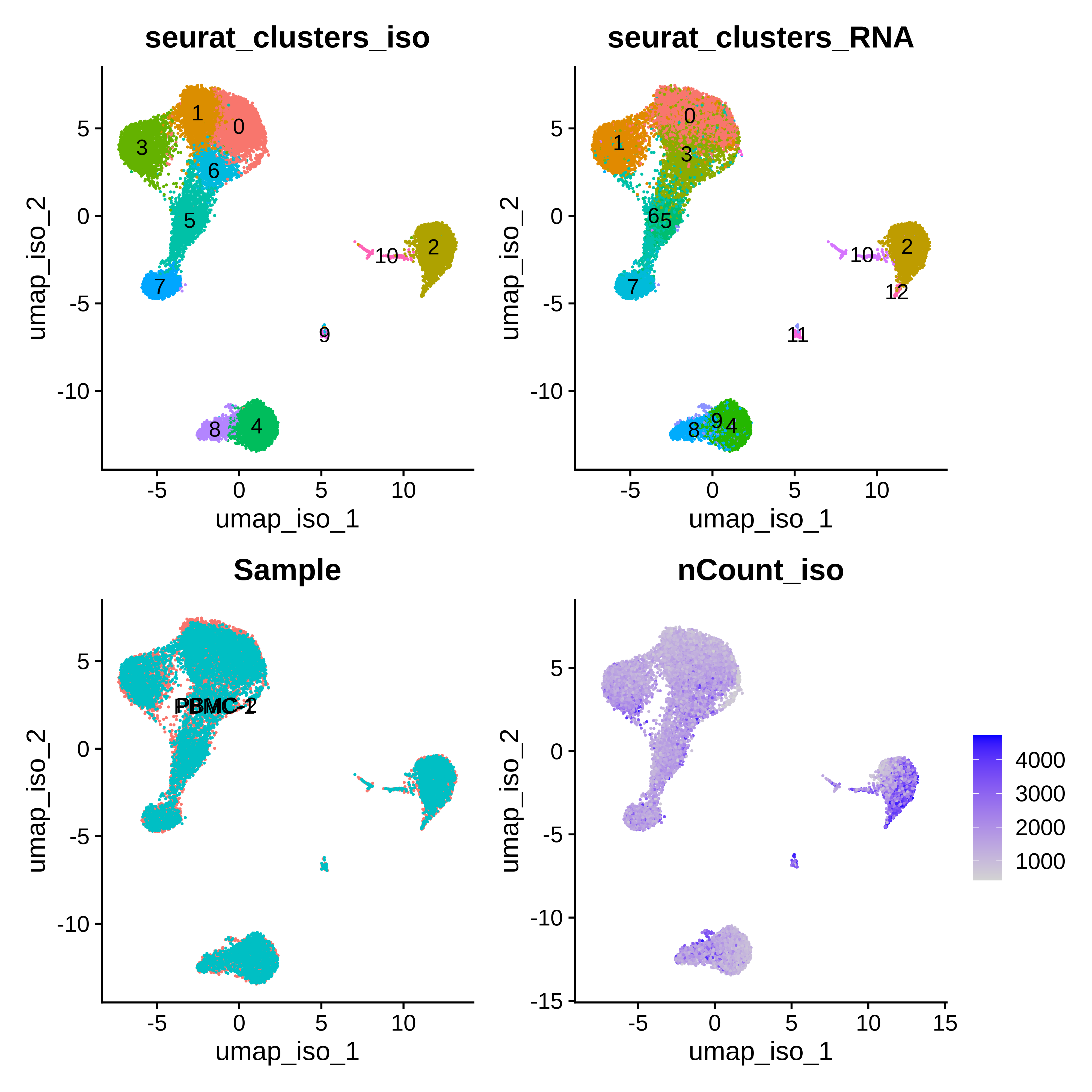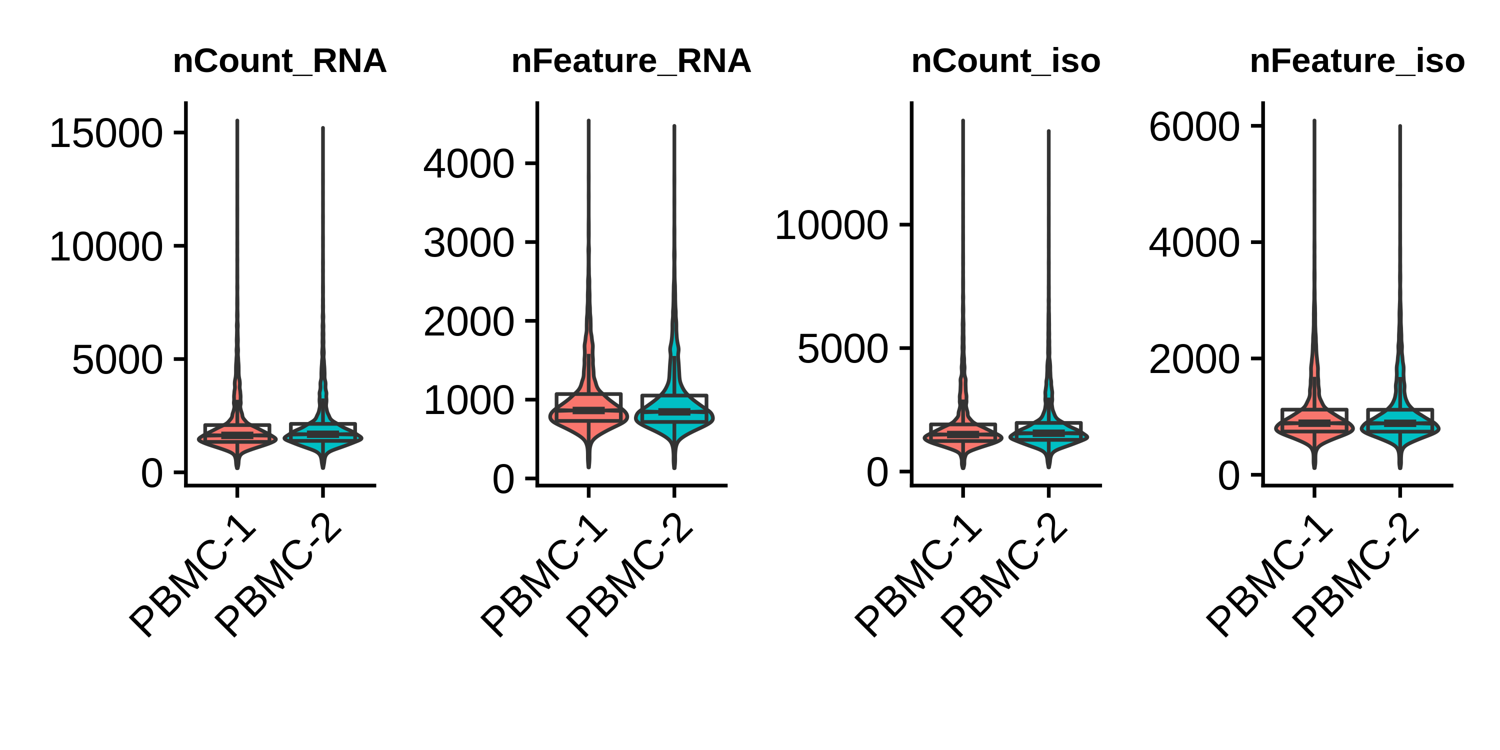 features <- c('nCount_RNA', 'nFeature_RNA', 'nCount_iso', 'nFeature_iso')