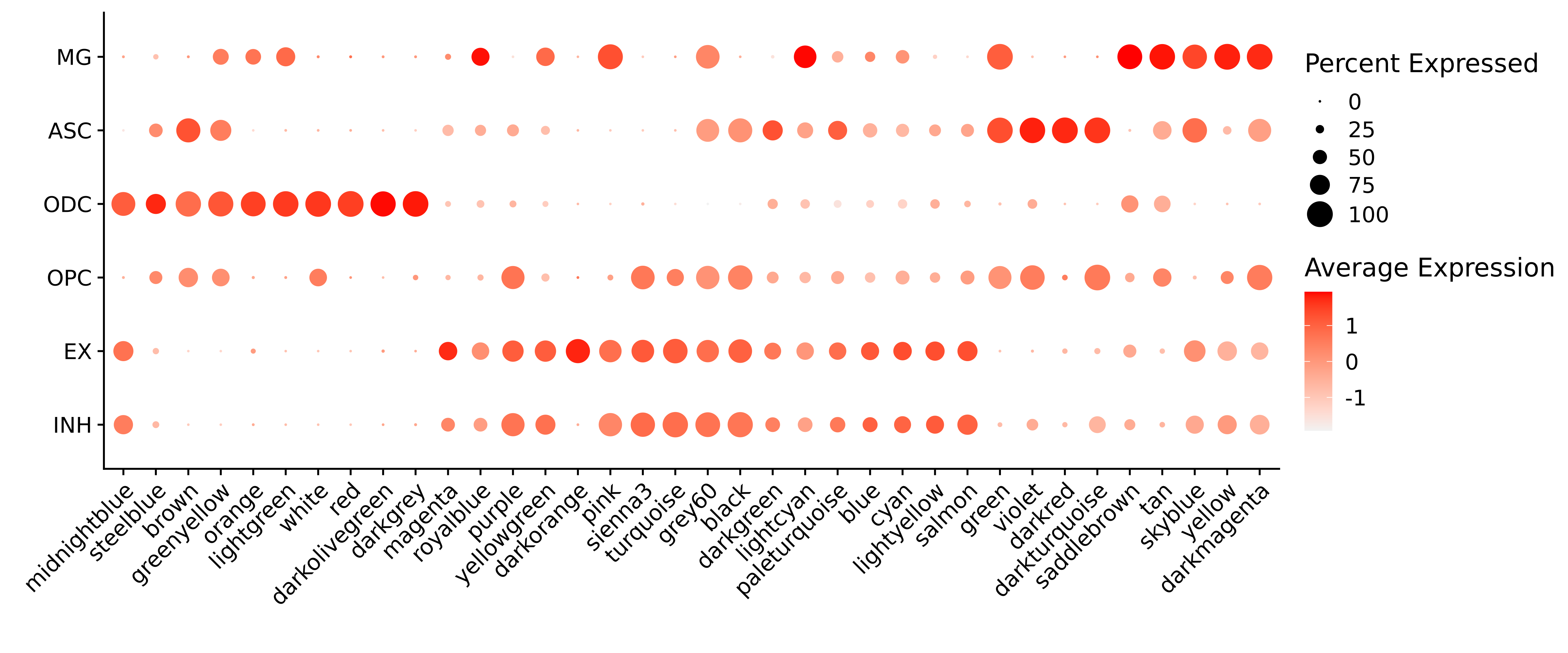 p <- DotPlot(seurat_obj, features=mods, group.by = 'cell_type')
