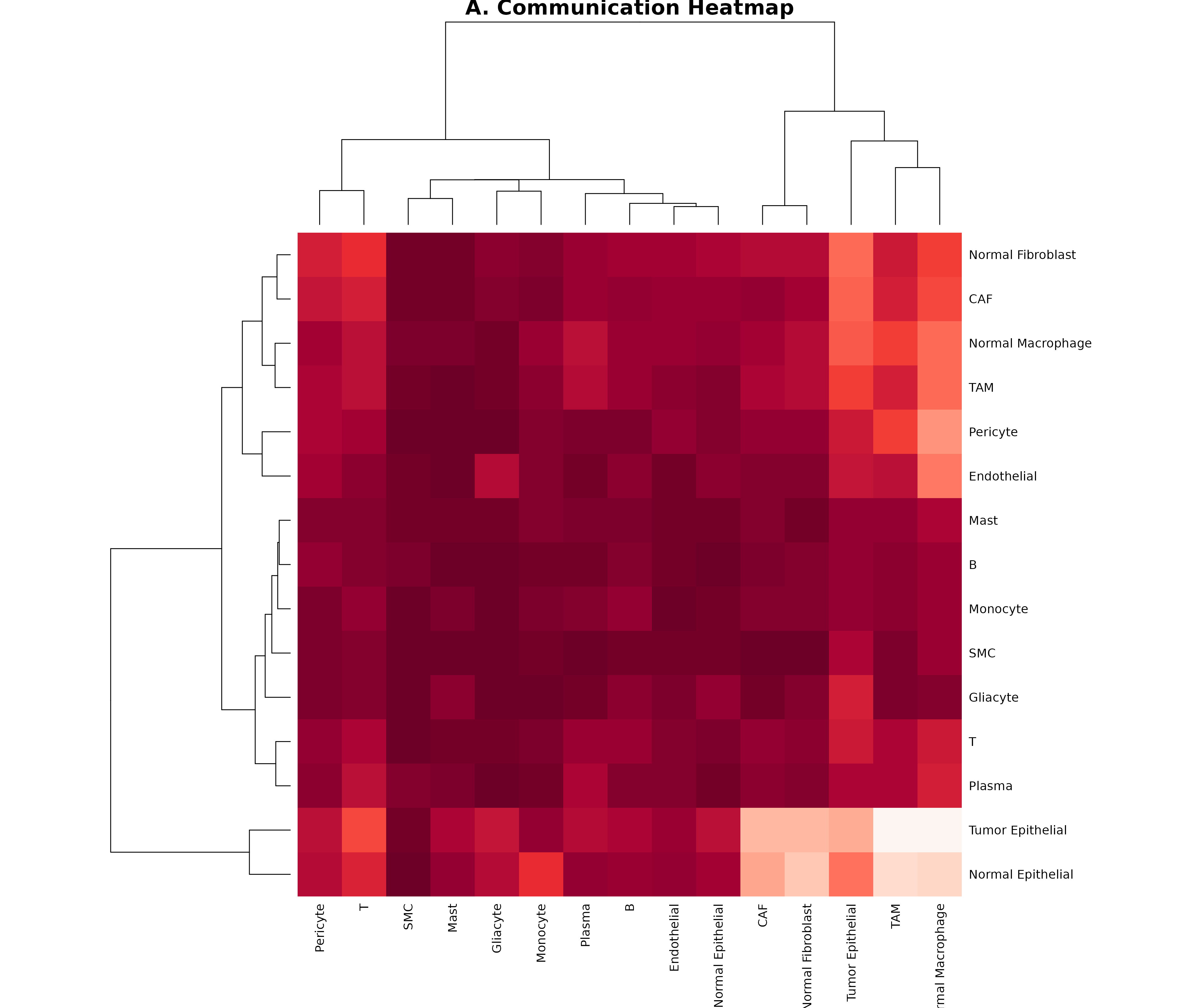 Figure 2: Customized Heatmap with Clustering. Hierarchical clustering reveals cell type groups with similar communication patterns.